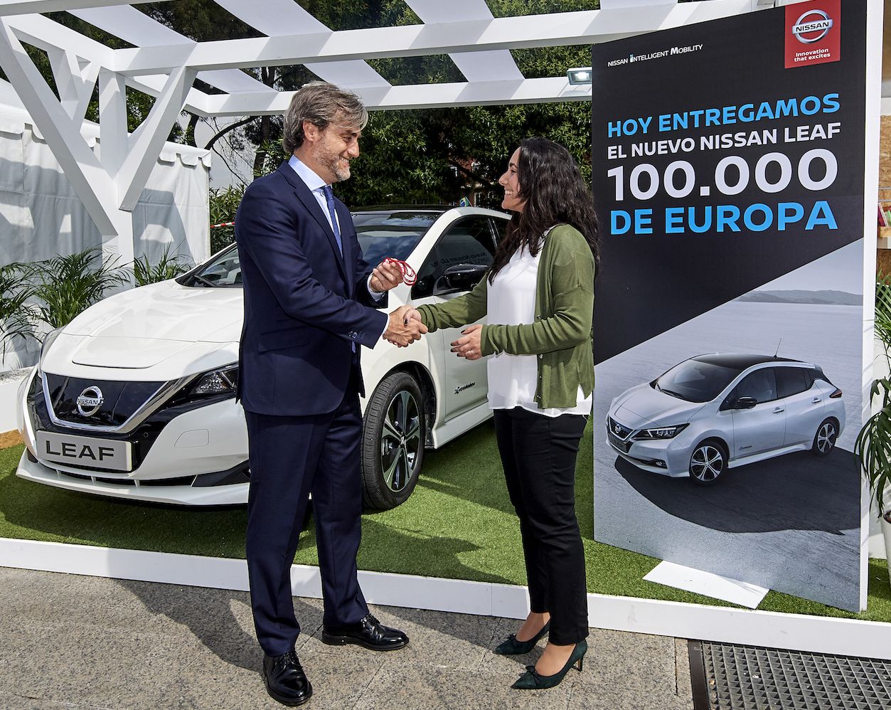 Susana de Mena iz Madrida ponosna je vlasnica stotisućitog Nissana Leaf. Pri preuzimanju svojeg novog vozila izjavila je: „Dvije sam godine tražila električni automobil. Znala sam da ću na kraju kupiti Nissan! Kad sam vidjela da izlazi novi Leaf znala sam da će mi savršeno odgovarati. Moj suprug i ja složili smo se da mu u pogledu kvalitete, cijene i opreme nema ravna. Svjesni smo činjenice da moramo poštovati i čuvati okoliš pa smo znali da želimo 100% električni automobil. Povrh toga, električnim automobilom možemo ući u samo središte Madrida, gdje uobičajeni automobili zbog onečišćenja ne mogu.“