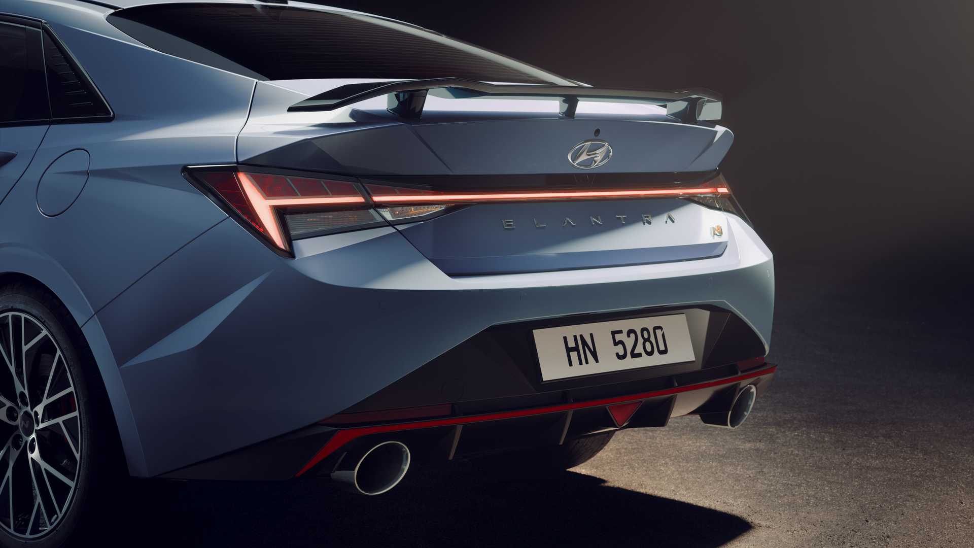 No osim novosti ispod poklopca motora, Elantra N donosi i karakteristične N promjene na karoseriji. Tako je dostupna s karakterističnom N plavom bojom, a tu su i novi sportski prednji i stražnji branici, dvije ispušne cijevi, spojler na poklopcu prtljažnika, sportski ovjes, 19-inčni aluminijski naplatci s gumama 245/35 ZR19, snažnije kočnice s crvenim kliještima, a tu su i decentni crveni detalji.