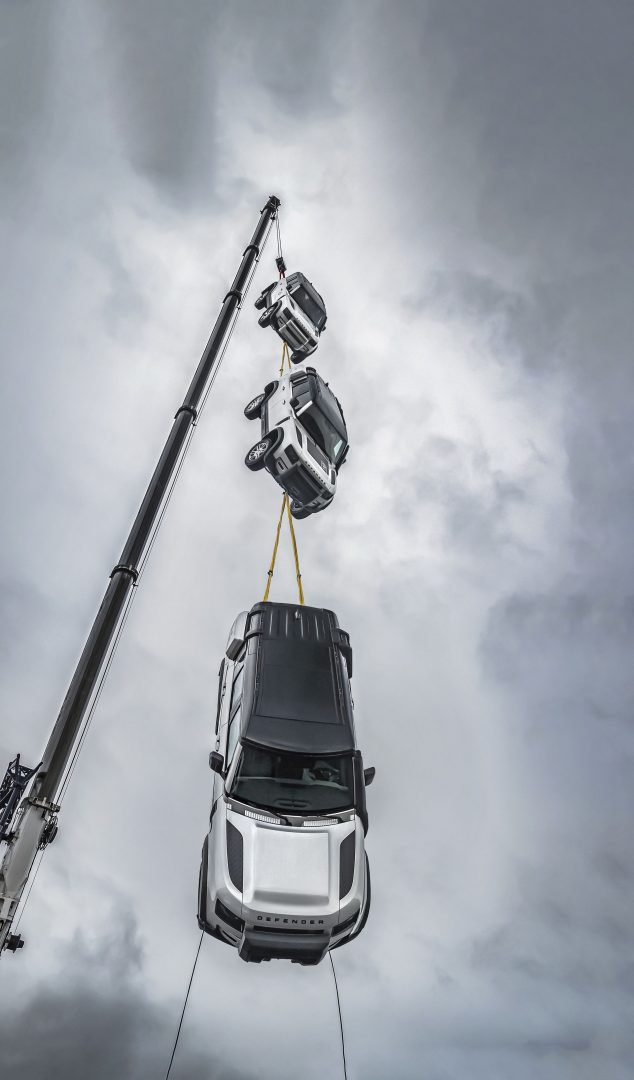 No da se proslava dobitka ove dvije nagrade ne bi proslavila klasično, pobrinuli su se Land Rover i Top Gear i napravili jedan izazov kvalitete i čvrstoće i to tako da su objesili tri nova Defendera na 60-metarsku dizalicu.