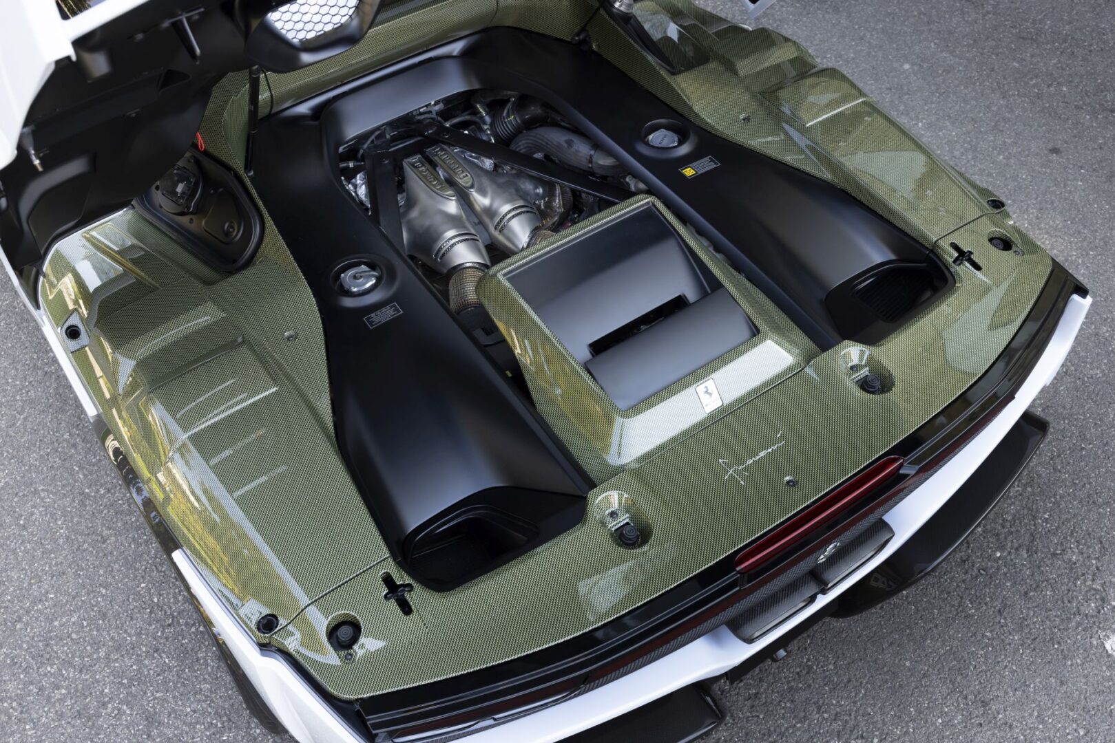Stilska tema inspirirana je industrijskim dizajnom, definiranim preciznim geometrijama i mišićavim, četvrtastim volumenima. Proporcije se odlikuju dugim, niskim nosom uravnoteženim kratkim stražnjim prevjesom i visokim, fiksnim stražnjim krilom – obojenim u SC40 bijelu boju po mjeri – koje se proteže s bokova karoserije. Fiksno krilo se proteže okomito od poklopca motora i besprijekorno se stapa s njim, istaknuto crnom linijom razdvajanja koja naglašava crnu stražnju masku. Ovo područje sastoji se od otvorene mreže koja otkriva mehaničke i strukturne komponente ispod. V6 motor predstavljen je kroz prepoznatljive, zadimljene Lexan lamele, koje se vizualno povezuju s donjim usisnikom zraka, a odražavaju ih manje lamele urezane u mišićava stražnja krila u blizini blatobrana. Izrađeni stražnji dio upotpunjen je središnjim ispuhom proizvedenim u aditivnoj proizvodnji s vrhovima od titana i karbonskih vlakana, te stražnjim svjetlima koja jasno nagovještavaju 296 GTB na kojem je automobil baziran.