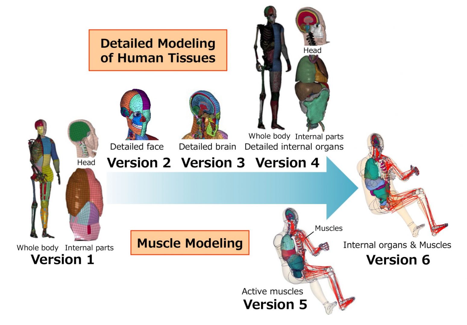 Izrađen kao pomoć u istraživanju i razvoju tehnologija za pomoć u sigurnosti vozila, u suradnji s Toyota Central R&D Labs., Inc., THUMS je bio prvi softver za modeliranje virtualnog ljudskog tijela na svijetu kada je predstavljen 2000. godine. Omogućio je simulaciju i analizu ozljeda nastalih u sudarima vozila. Otada pa do izlaska zadnje, Verzije 6, prošle godine, neprekidno se razvijao dodavanjem modela oba spola, razne dobi i tjelesne građe uključujući kostur, mozak, unutarnje organe i mišiće. U usporedbi s fizičkim lutkama koje se uobičajeno koriste u ispitivanjima sudara vozila, THUMS može detaljnije analizirati ozljede koje su posljedica sudara jer precizno modelira oblike i trajnost ljudskih tijela. Provodeći simulacije na računalima omogućava i ponovljene analize niza različitih uzoraka sudara, te može značajno smanjiti trajanje razvoja, kao i troškove povezane s ispitivanjem sudara.
