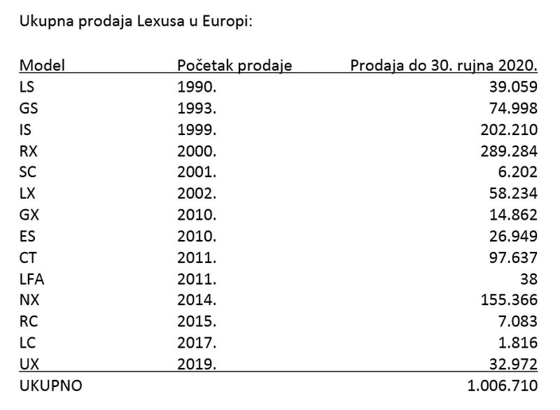 Lexus ove godine slavi 30 godina od dolaska na europsko tržište, a toj se obljetnici sada pridružuje još jedna važna činjenica – istovremeno je u Europi prodano preko milijun vozila, što je mnogo za ovakav brend koji prodaje samo automobile više klase. A iz Lexusa očekuju još bolju prodaju u budućnosti zahvaljujući prvom potpuno električnom automobilu, UX 300e, koji u narednim tjednima stiže na odabranim europskim tržištima.