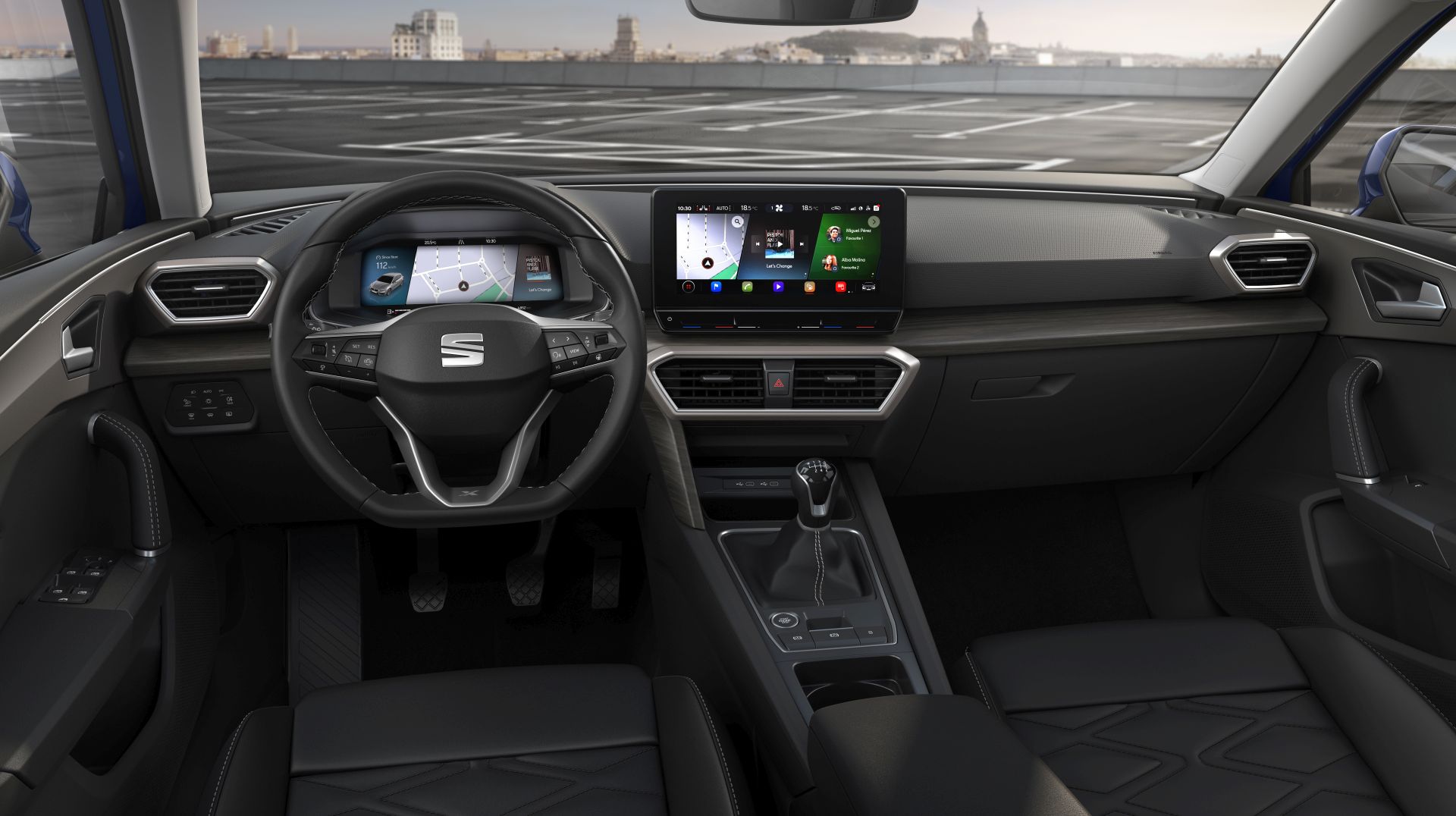 Unutrašnjost je također potpuno nova i modernije je dizajnirana, a sada je i Leon dobio opcijsku 10,58-inčnu digitalnu instrument ploču. Glavni multimedijski zaslon je smješten na vrhu središnje konzole i veličine je 8 inča, dok u skupljim paketima opreme dolazi u veličini od 10 inča, a uvijek podržava Android Auto i Apple CarPlay. Tu su i bežični punjač za smartfone, ali i još jedna novost – trozonski automatski klima uređaj. Osim toga, ugrađeni su i svi najnoviji sigurnosni sustavi pomoći vozaču, a novost je i sustav Exit Assist koji sve putnika upozorava na promet ili bicikliste prilikom otvaranja vrata radi izlaska iz vozila.