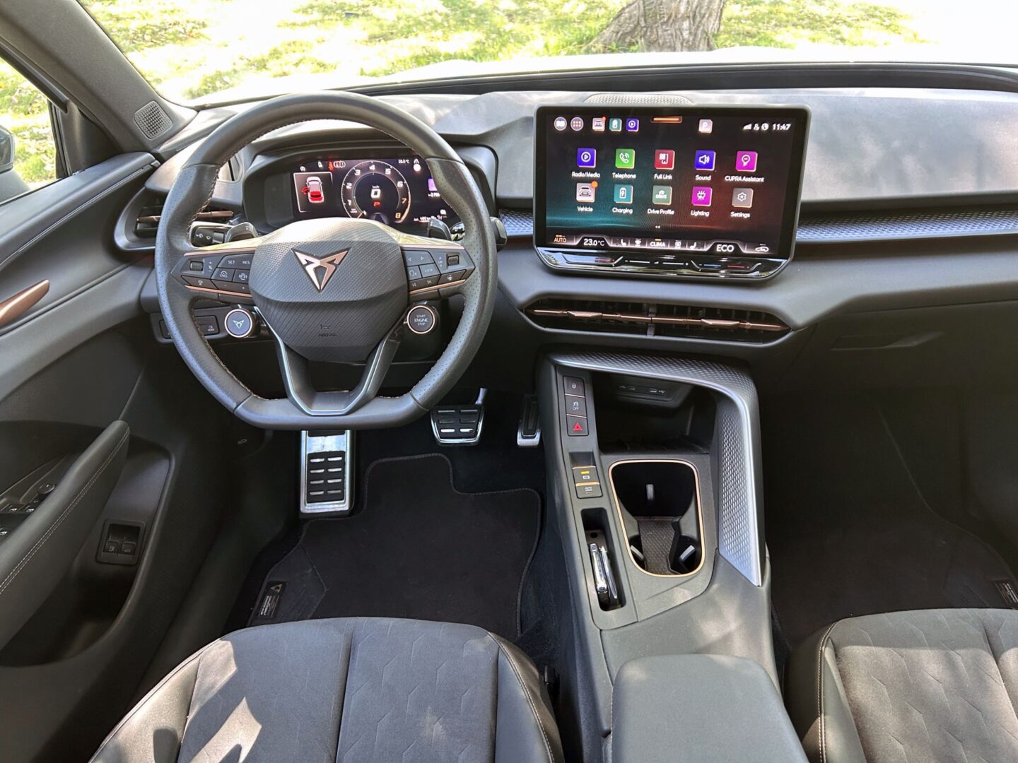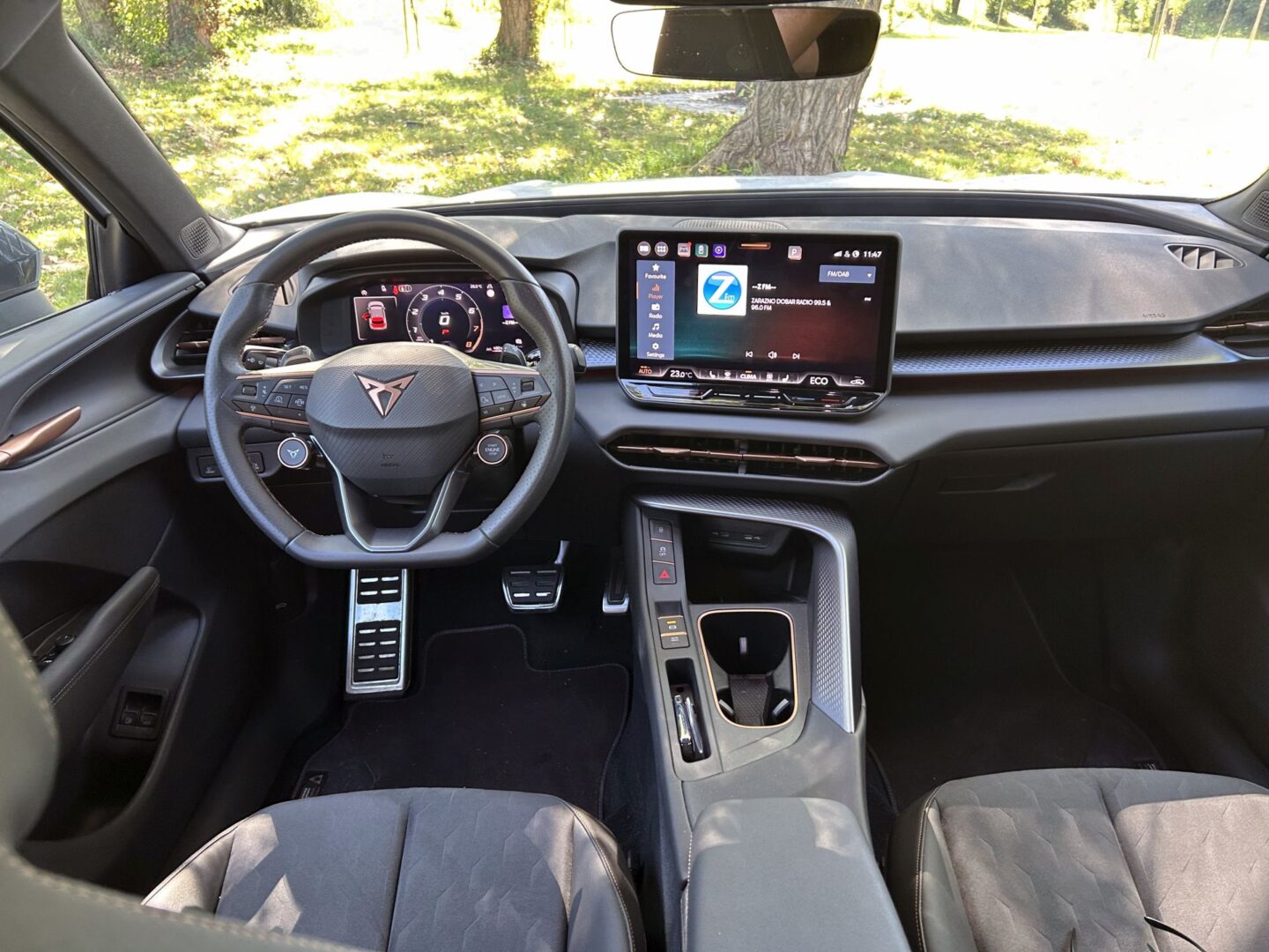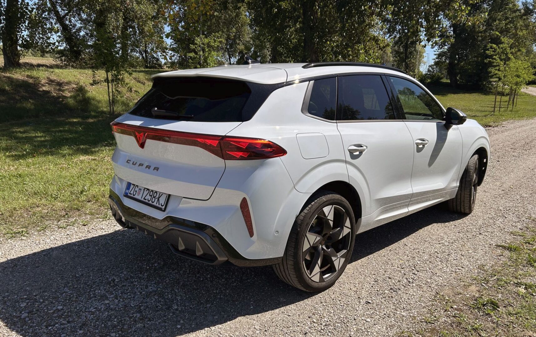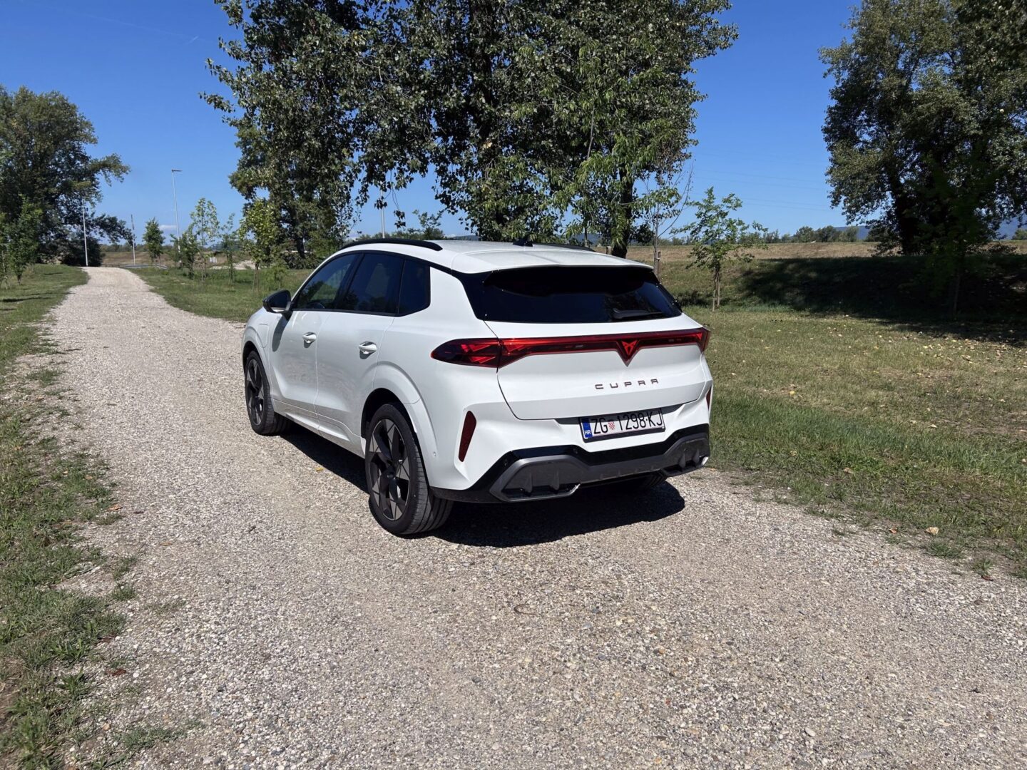 Sprijeda u oči upadaju LED dnevna svjetla koja se sastoje od tri mala trokuta, a to je novi svjetlosni potpis Cuprinih modela, a šiljasti prednji dio daju sportski štih. Iako nije riječ o coupe SUV modelu bočna linija je dovoljno sportska, a dojam povećavaju i 20-inčni dvobojni aluminijski naplatci s niskoprofilnim gumama, dok se stražnja 3D LED svjetla protežu čitavom širinom, a u sredinu je uklopljen i logo marke. Tu su i sportski branici, a zanimljivo je kako nema zaštitne crne plastike oko vozila, no sveukupan je dojam jako pozitivan. I naš, ali i od prolaznika koji su često okretali glavu za nama.
