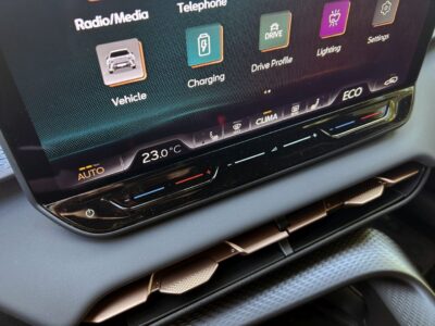 A dovoljno su pregledni i 10,25-inčni digitalni instrumenti kojima možete prilagođavati izgled, dok je središnji multimedijski zaslon je dijagonale 12,9 inča i prilično je pregledan, a lako je i podesiti izgled prama vlastitim željama. Naravno, povezivanje s Android Autom i Apple CarPlayom je bežično, a zamjerili bi samo način na koji se podešava klimatizacija – putem dodirnih površina ispod zaslona. One jesu osvijetljene po noći, no nije ih intuitivno koristiti i svakako morate maknuti pogled s ceste ako želite napraviti ikakvu promjenu. Mnogobrojni pretinci se nalaze u dijelu između vozača i suvozača, a tu je i udoban i dovoljno širok naslon za ruke ispod kojeg je prilično velik pretinac ako znamo da je tu i tunel za zrak za putnike straga, koje očekuje i vlastiti termostat za temperaturu. Naime, klima je trozonska, pa i putnici straga mogu odabrati idealnu temperaturu, a podno nje su i dva USB priključka za punjenje uređaja.