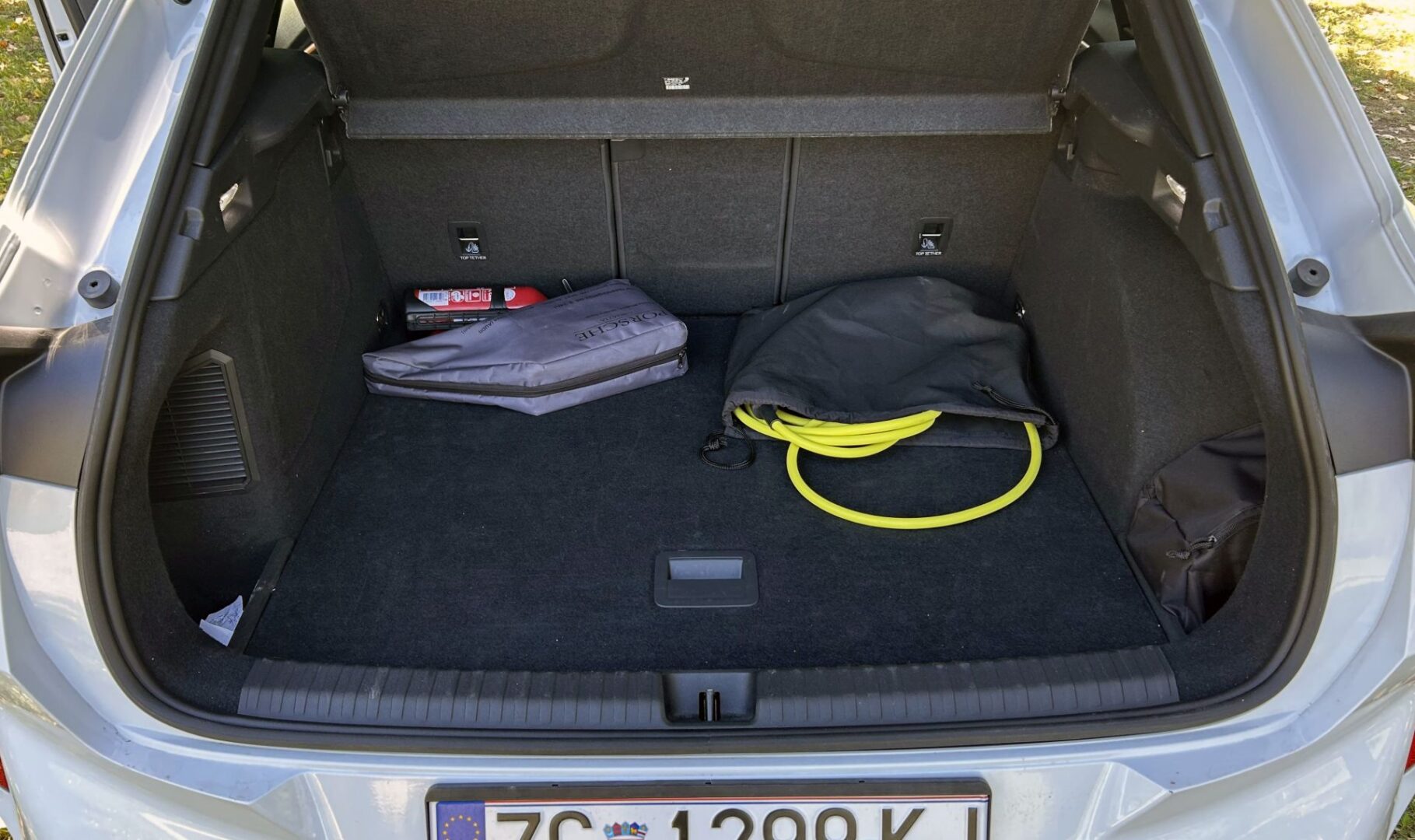 Kod ove je izvedbe malo nastradao prtljažnik, jer je negdje trebalo smjestiti i bateriju, a s obujmom od 450 litara je dovoljan za obiteljske potrebe. To je manje za nešto više od 50 litara u odnosu na benzinsku izvedbu, no uvijek će dobro doći i klizna stražnja klupa koja omogućuje nešto veći prtljažnik ili pak više prostora za koljena za putnike na stražnjim sjedalima, ovisno što vam je u tom trenutku potrebnije.