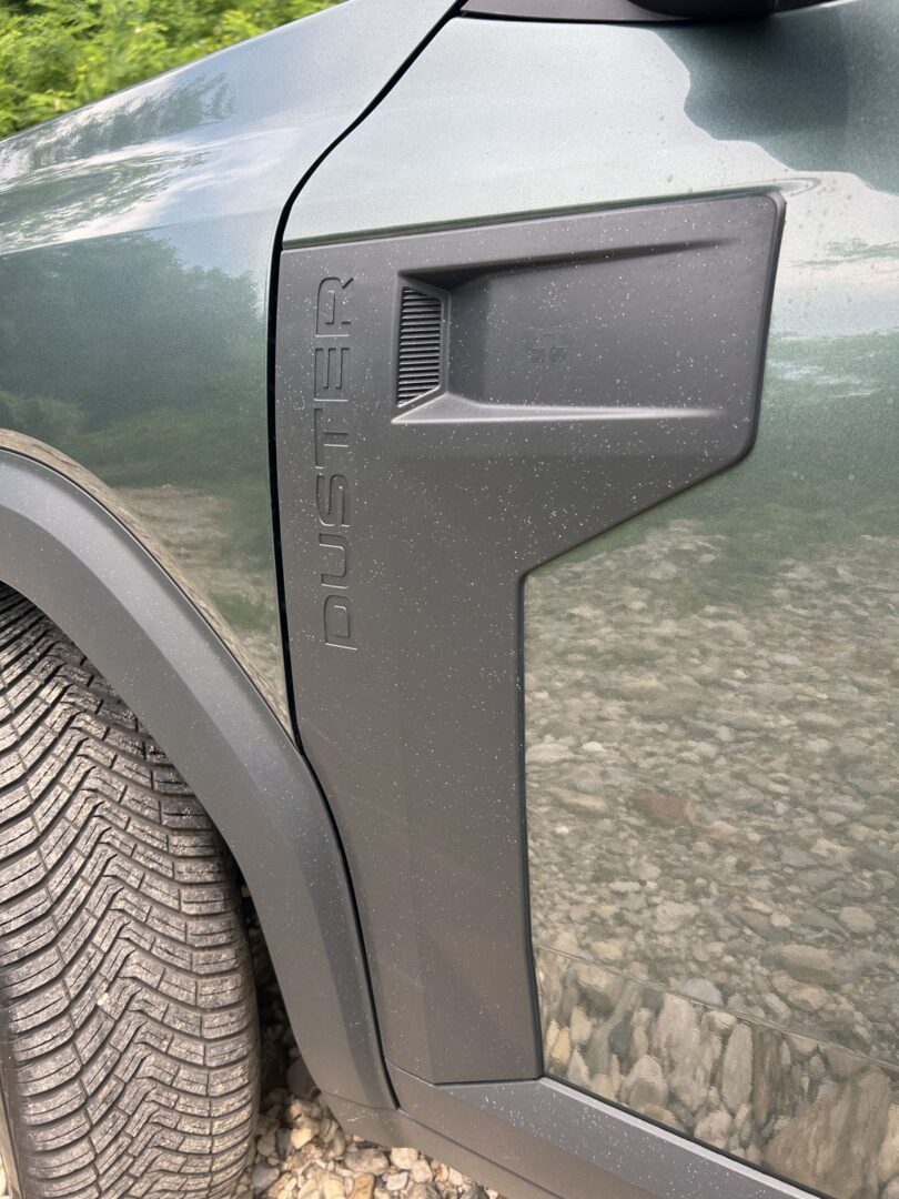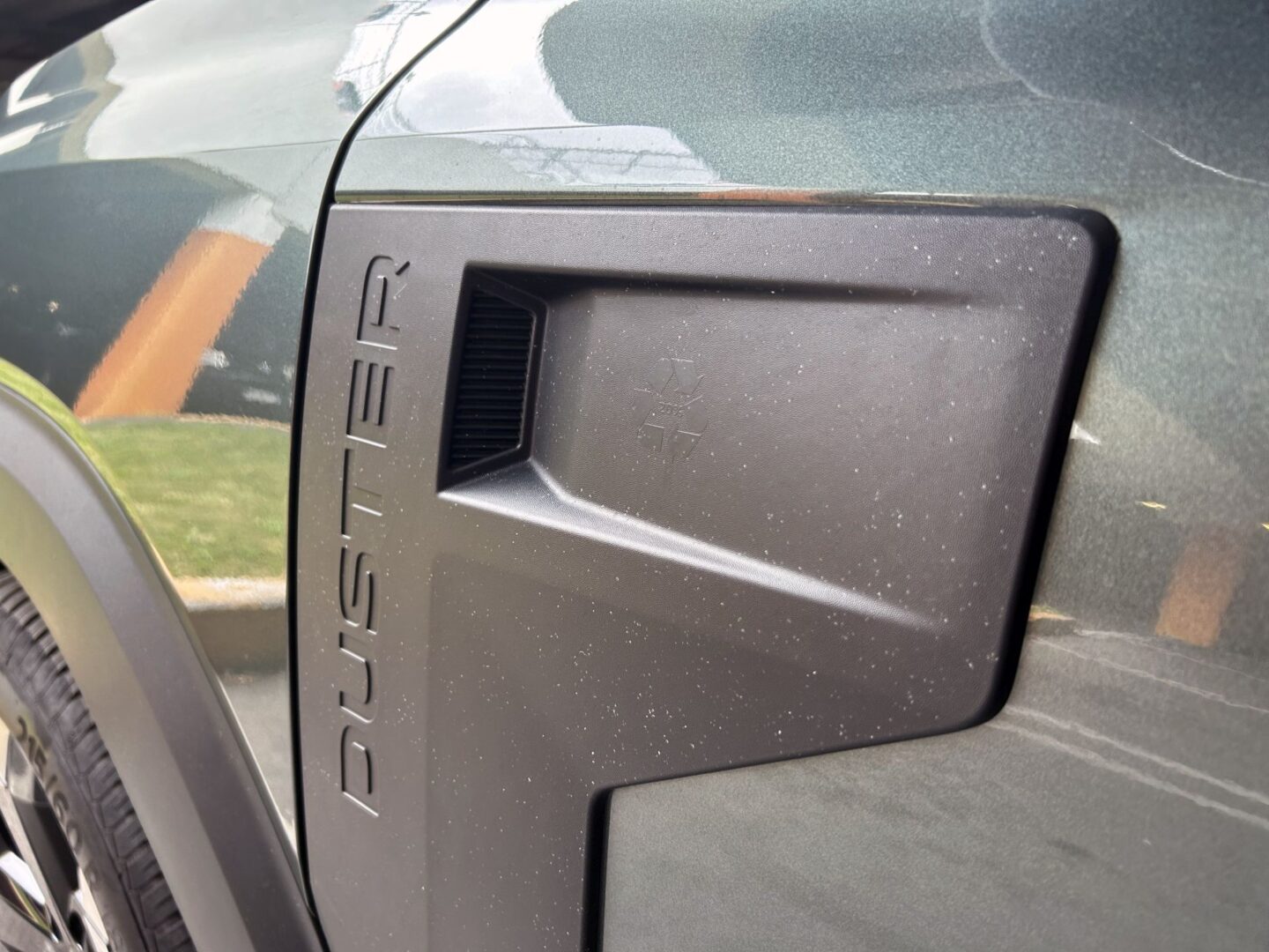 A novi Duster izgleda dobro bez obzira od kuda ga gledali. Serijska prednja LED svjetla dolaze s karakterističnim Y potpisom LED dnevnih svjetala a između njih je moderno dizajnirana maska motora, dok su stražnja svjetla sada u Y obliku, a prednji i stražnji branici su prilično masivni. Tu su i karakteristična proširenja karoserije oko lukova kotača, a Duster je dobio sakrivenu stražnju ručicu za otvaranje vratiju, što se neće svidjeti djeci jer će do nje jako teško sami doći. No unutra će ih čekati dovoljno prostora, a na stražnjim sjedalima će se dobro osjećati i odrasli. Dacia je uspjela odlično iskoristiti prostor, pa će samo rijetkima nedostajati prostora za koljena ili glavu. Ventilacijskih otvora i dalje nema, što je u skladu s cijenom, no stražnje će putnice obradovati dva USB-C priključka za punjenje. Osim toga, vrata se otvaraju prilično široko, pa ni ulazak i izlazak iz vozila neće biti problem.