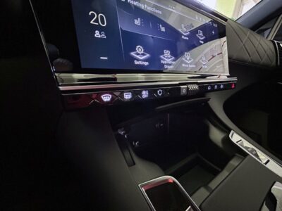 Sprijeda je kod redizajna najveća razlika u multimedijskom zaslonu koji je dijagonale 12 inča i koji donosi mnogobrojne mogućnosti prilagodbe, iako nije uvijek najbrži u radu. Za pohvalu je srebrni kotačić za brzo podešavanje glasnoće, a tu su i dodirne tipke osnovnih funkcija, kao i tri dodirne tipke prečaca zaslona. Tu je važna ona na kojoj se nalazi automobil, jer vas vodi direktno do izbornika na kojem možete postaviti prečace za gašenje sustava u vožnji.