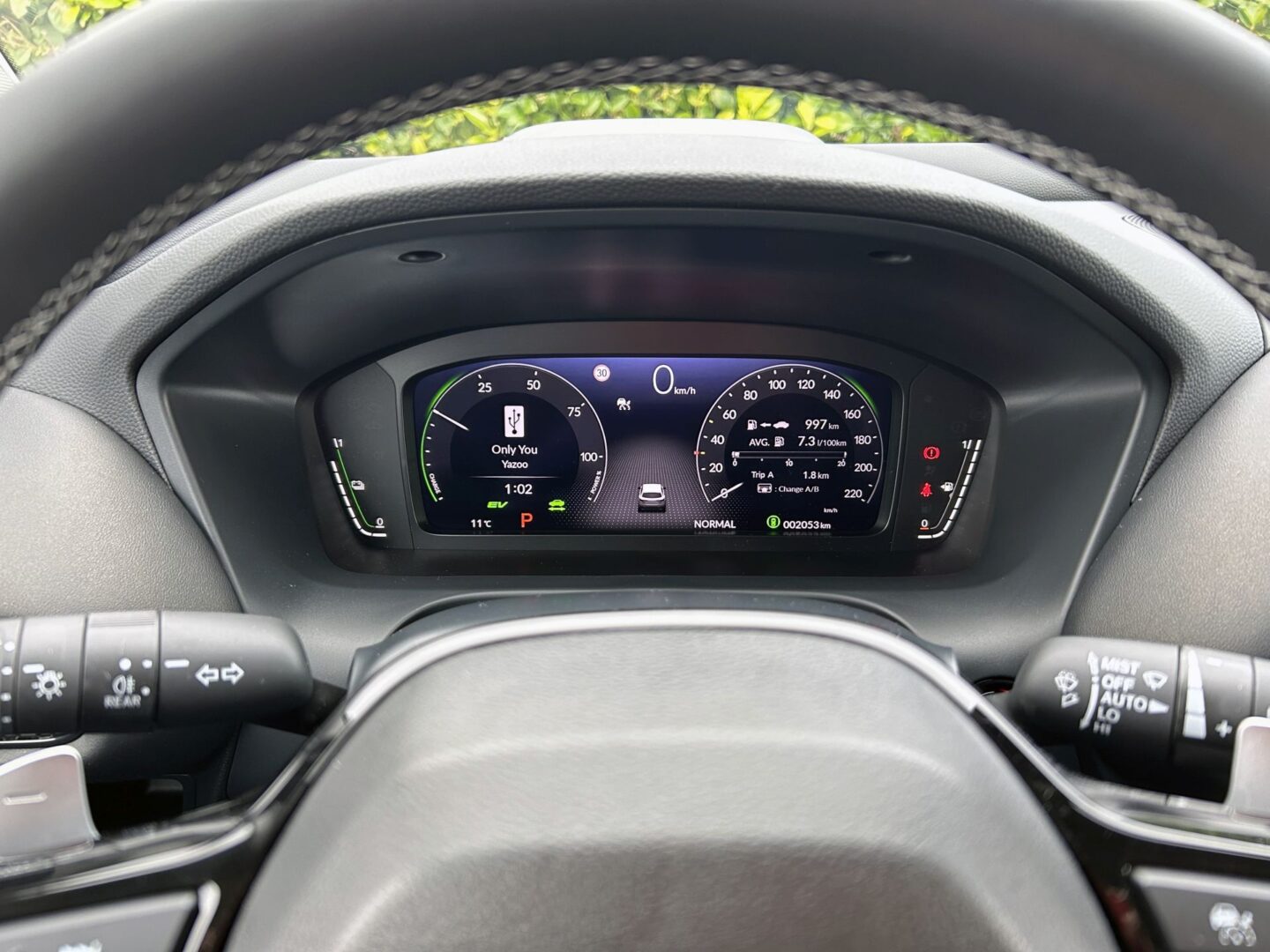 Sve izvedbe dolaze sa 7-inčnim digitalnim zaslonom umjesto instrumenata koji je prilično jednostavnog izgleda, ali istovremeno lako čitljiv i s prikazom svih važnih informacija istovremeno. Izvan zaslona, s krajnje lijeve i desne strane se nalaze pokazivači napunjenosti baterije, odnosno količina benzina u spremniku. Središnji multimedijski zaslon ima dijagonalu od 10,2 inča i također je jednostavnijeg dizajna izbornika, no zato je čitav sustav brz, a opcije logično raspoređene, pa upravljanje nije nikakav problem. Za pohvalu su i fizičke tipke s lijeve strane, kao i veliki okretni gumb za jačinu zvuka. Kao što smo već spomenuli, komande klimatizacije su odvojene od zaslona i s fizičkim kotačićima, a ventilacijski otvori su sakriveni ispod saćastog ukrasa koji je postavljen na kokpitu i proteže se čitavom širinom vozila.