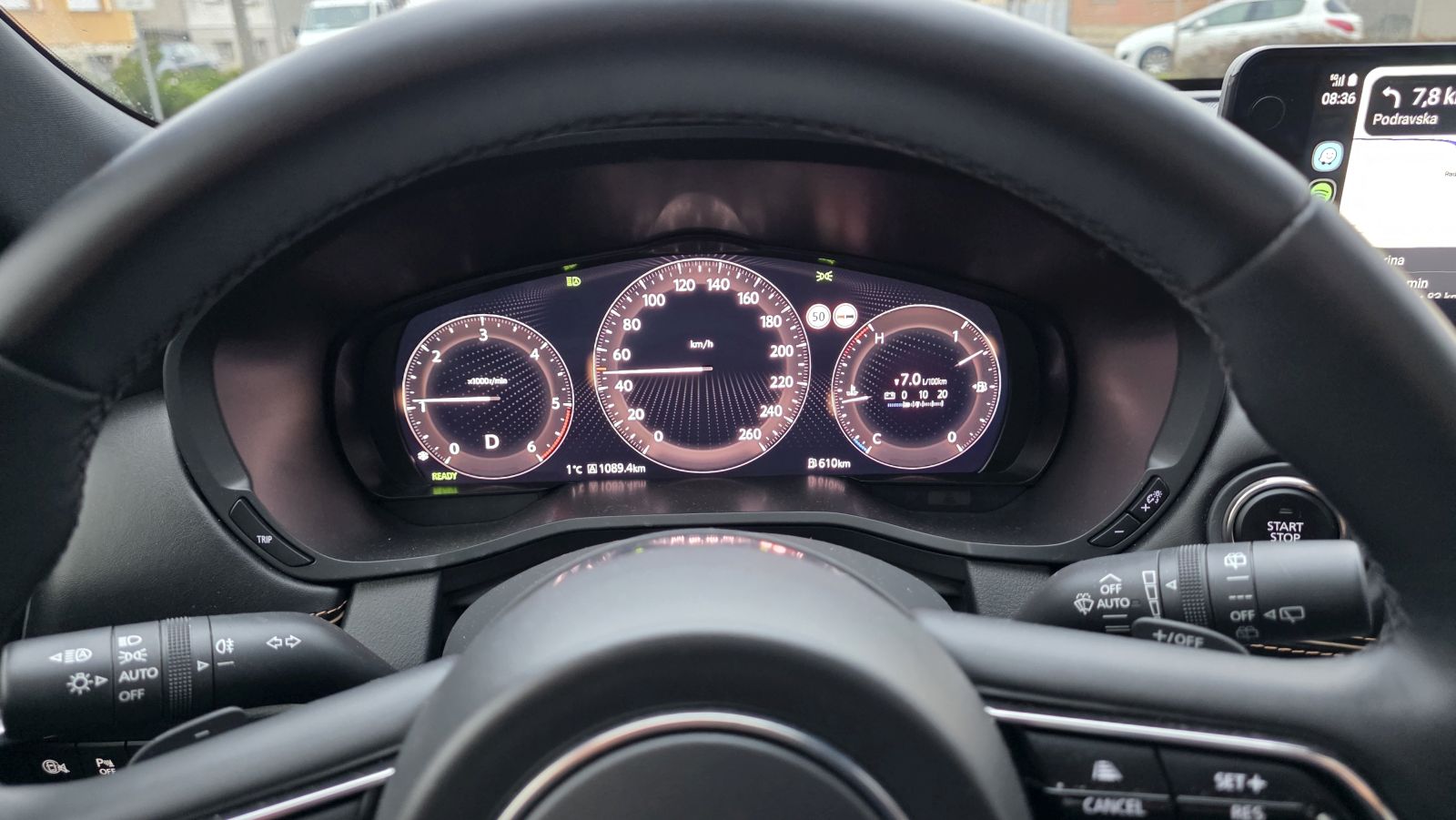 Ono što ovaj motor čini posebnim je Mazda DCPCI (Distribution-Controlled Partially Premixed Compression Ignition) tehnologija izgaranja. Riječ je o sustavu koji dramatično poboljšava učinkovitost i smanjuje emisije štetnih plinova, čineći ovaj motor spremnim čak i za stroge Euro 7 norme koje dolaze. Uz to, tu je i 48-voltni M Hybrid Boost blagi hibridni sustav. On preuzima opterećenje pri kretanju i laganom krstarenju, a pri malim opterećenjima može nakratko ugasiti dizelaš i održavati brzinu samo pomoću struje, što dodatno pridonosi nevjerojatnoj štedljivosti. U praksi, motor isporučuje snagu linearno i gotovo bez napora. Zvuk je dubok, ali profinjen – ono specifično režanje motora koje podsjeća na snagu, ali nije zamorno.