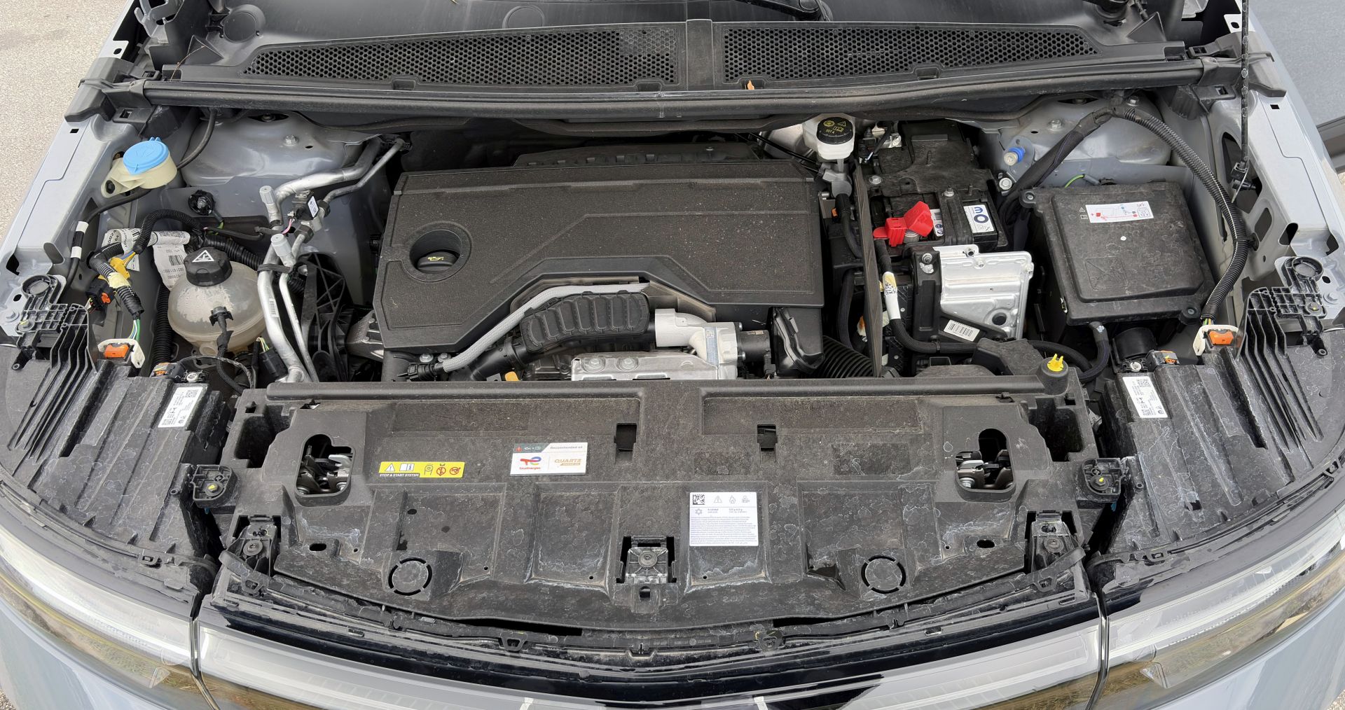 Kako više u ponudi nema turbo dizel motora, domaći kupci će najčešće birati blagohibridnu izvedbu kakvu smo imali na testu. Riječ je o sustavu koji se sastoji od 1,2-litrenog PureTech trocilindričnog turbo benzinca koji razvija snagu od 100 kW/136 KS i elektromotora koji razvija snagu od 16 kW/21 KS, te od litij-ionske baterije kapaciteta 0,4 kWh. Sustav je kombiniran sa 6-stupanjskim automatskim mjenjačem s dvije spojke, a ukupna snaga sustava je 107 kW/145 KS, a dostupno je i 230 Nm okretnog momenta.