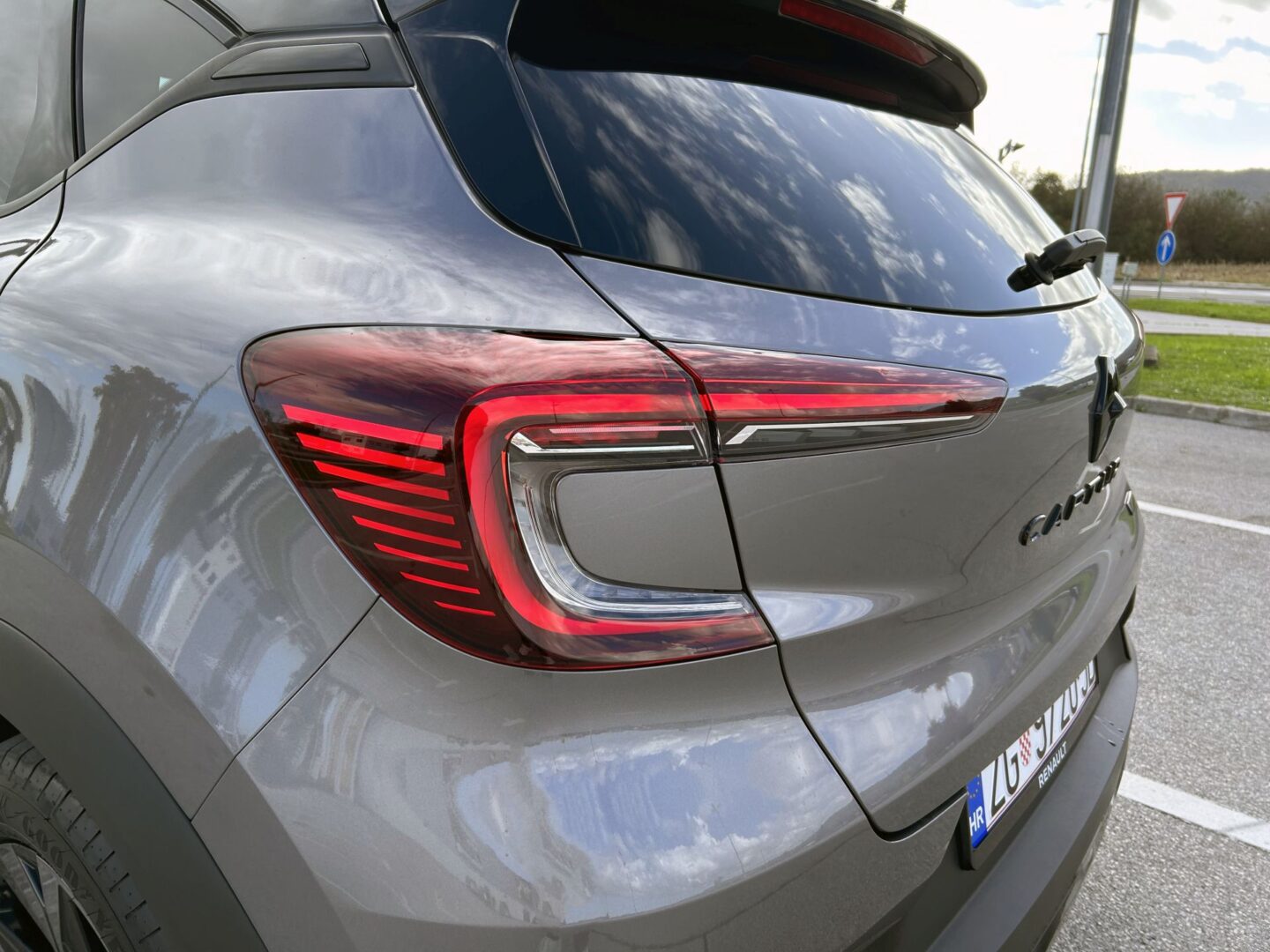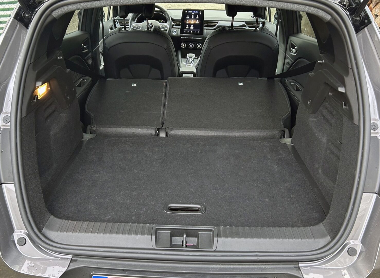 Captur je narastao u svim smjerovima, pa mu je sada dužina 4227 mm, širina 1797 mm i visina 1576 mm, dok je međuosovinski razmak dug 2639 mm. To je pridonijelo više prostora u kabini, ali i u prtljažniku, koji u hibridnoj izvedbi ima nešto manji obujam nego u standardnoj benzinskoj izvedbi. Naravna, razlog tome je baterija hibridnog pogonskog sustava, no i dalje je na raspolaganju 326 litara, a preklapanjem stražnjeg naslona obujam raste na 1149 mm uz potpuno ravnu podnicu. A zahvaljujući visokom krovu u njega stanu i veći predmeti.