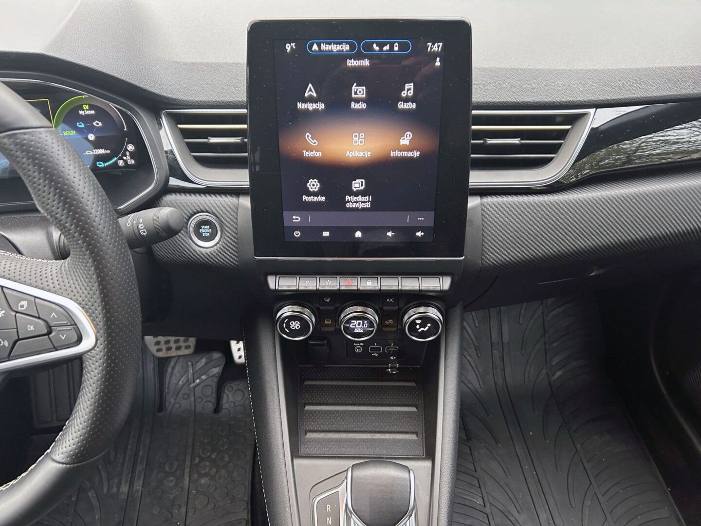 Klavirske tipke su tu za brzi odabir funkcija, a tik ispod njih su smještene jedne od najboljih kontrola klimatizacije na tržištu. Koriste se u mnogobrojnim modelima i uvijek nam je užitak njima upravljati. Velike su i okrugle s malenim ekranima u srediti, daju odličnu povratnu informaciju za koliko ste „zubaca“ okrenuli gumb, a sve to omogućuje rad s njima bez pomicanja pogleda s ceste. Ispod njih se nalaze priključci, kojih kod Captura ne nedostaje, a još uvijek se koriste standardni USB priključci, odnosno takozvani veliki USB, a tu je i polica za punjenje mobitela. Kako je Captur opremljen automatskim mjenjače, tako je taj dio „lebdeći“, pa se ispod njega našlo prostora za još jednu dodatnu policu. Pretinaca nikad dosta, znaju to i u Renaultu.